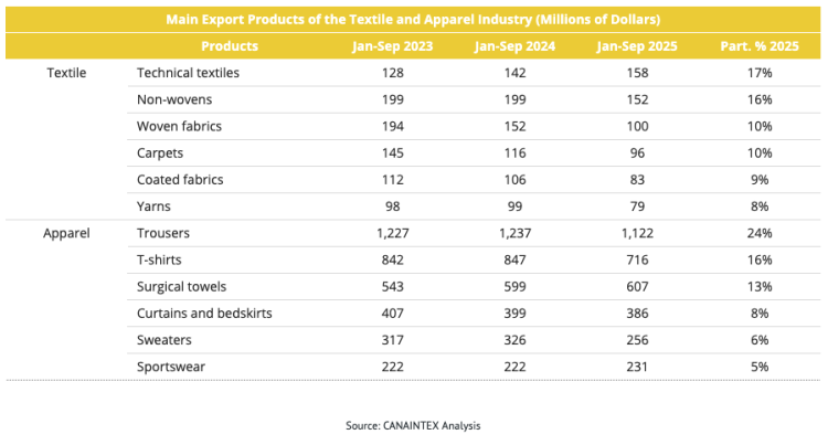 Next Image Main Export Products of the Textile and Apparel Industry (USD M) Main Export Products of the Textile and Apparel Industry (USD M)